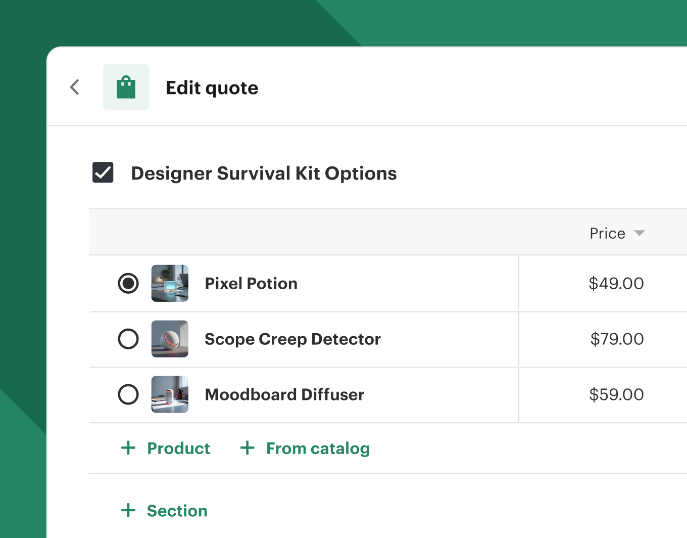 Led end-to-end product design of Quote Builder. Result: 2% of company ARR, 65% retention (mid 2025) Replaced legacy pricing tool with flexible, sales-focused quoting engine